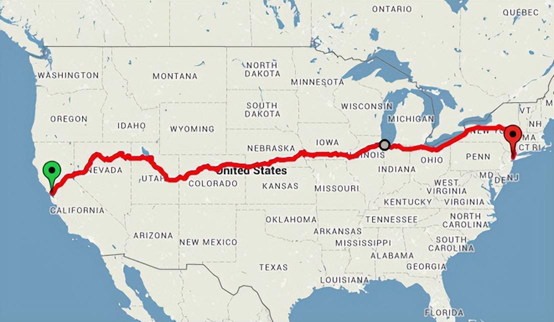 图为美国西部的爱达荷州与东部的纽约市